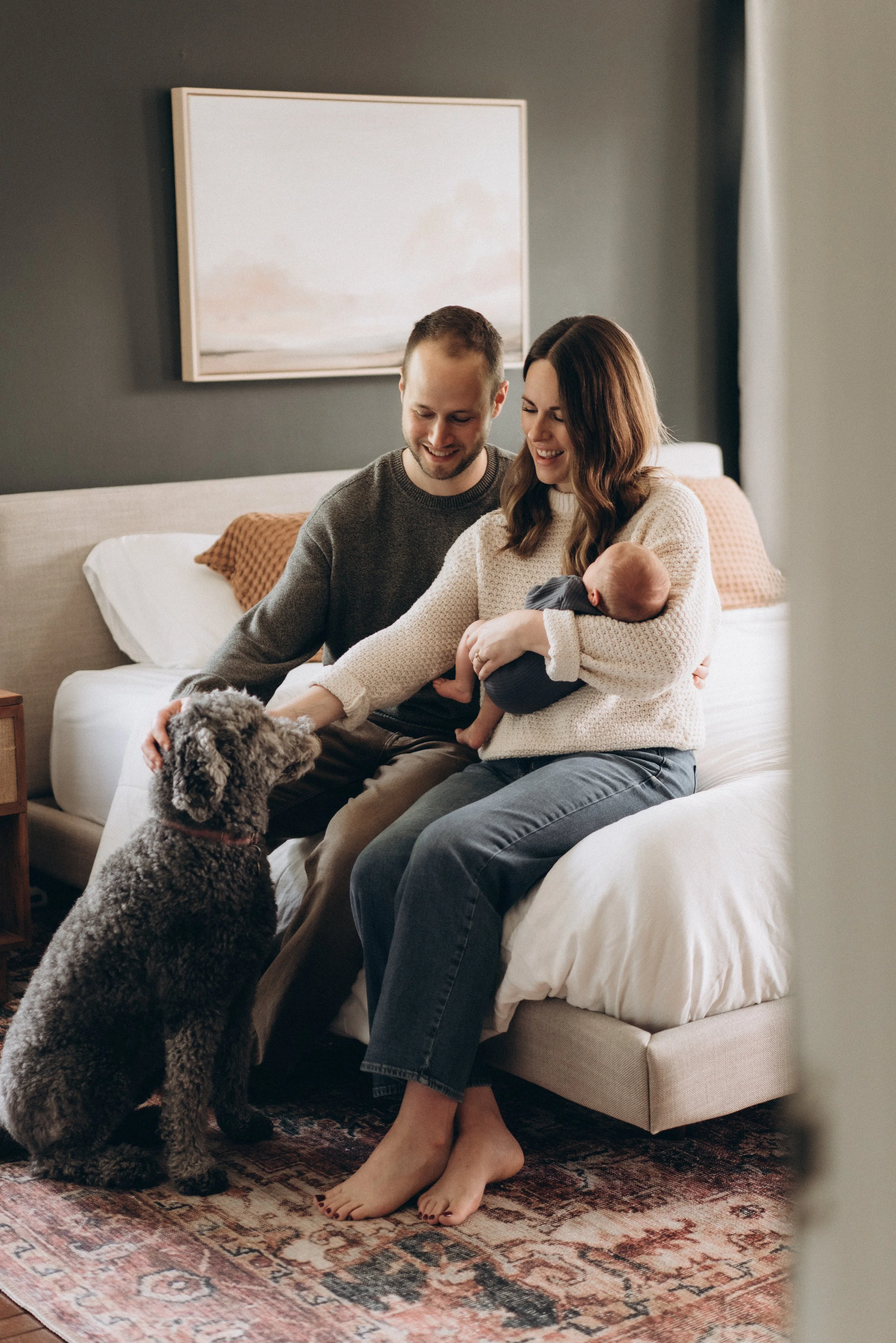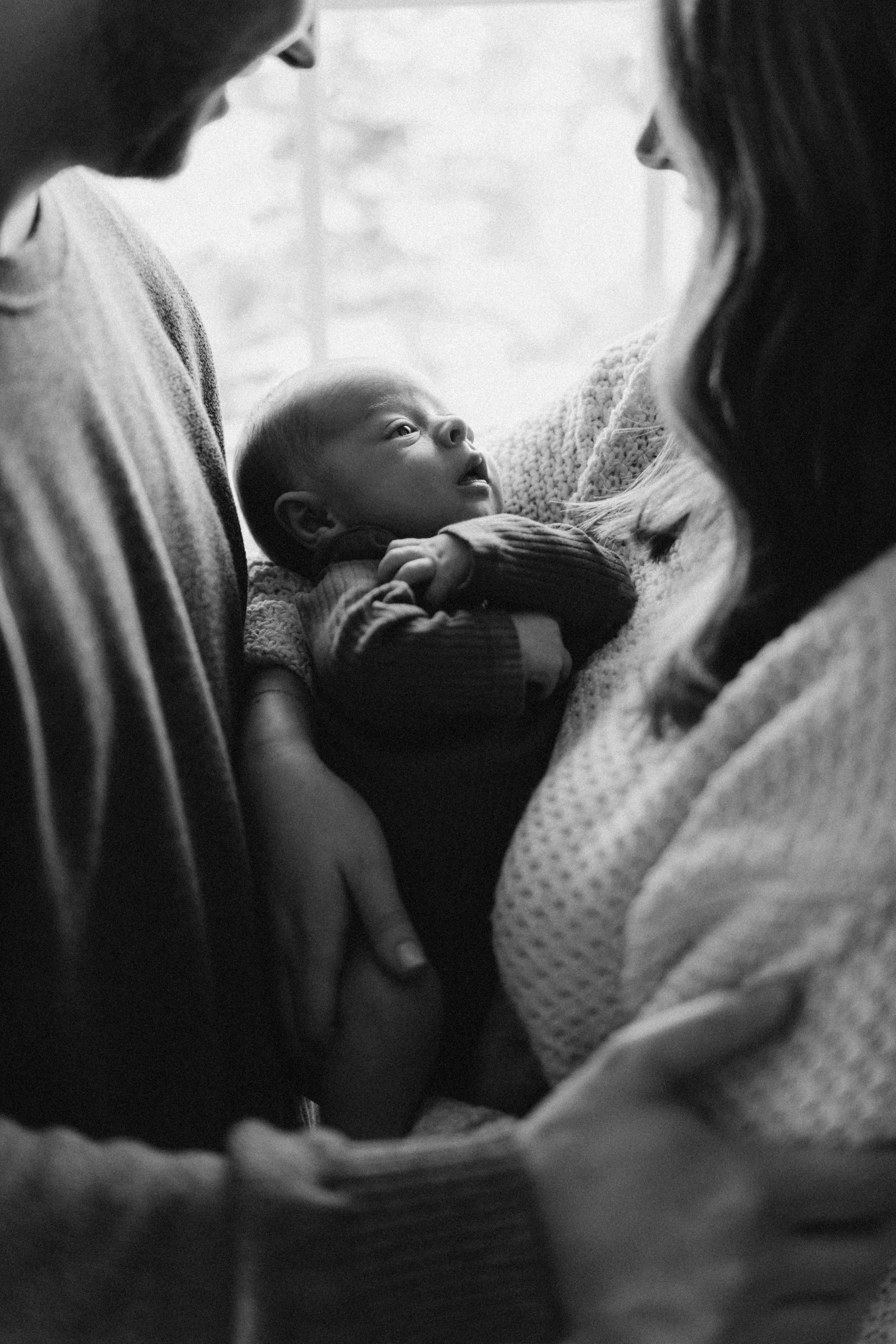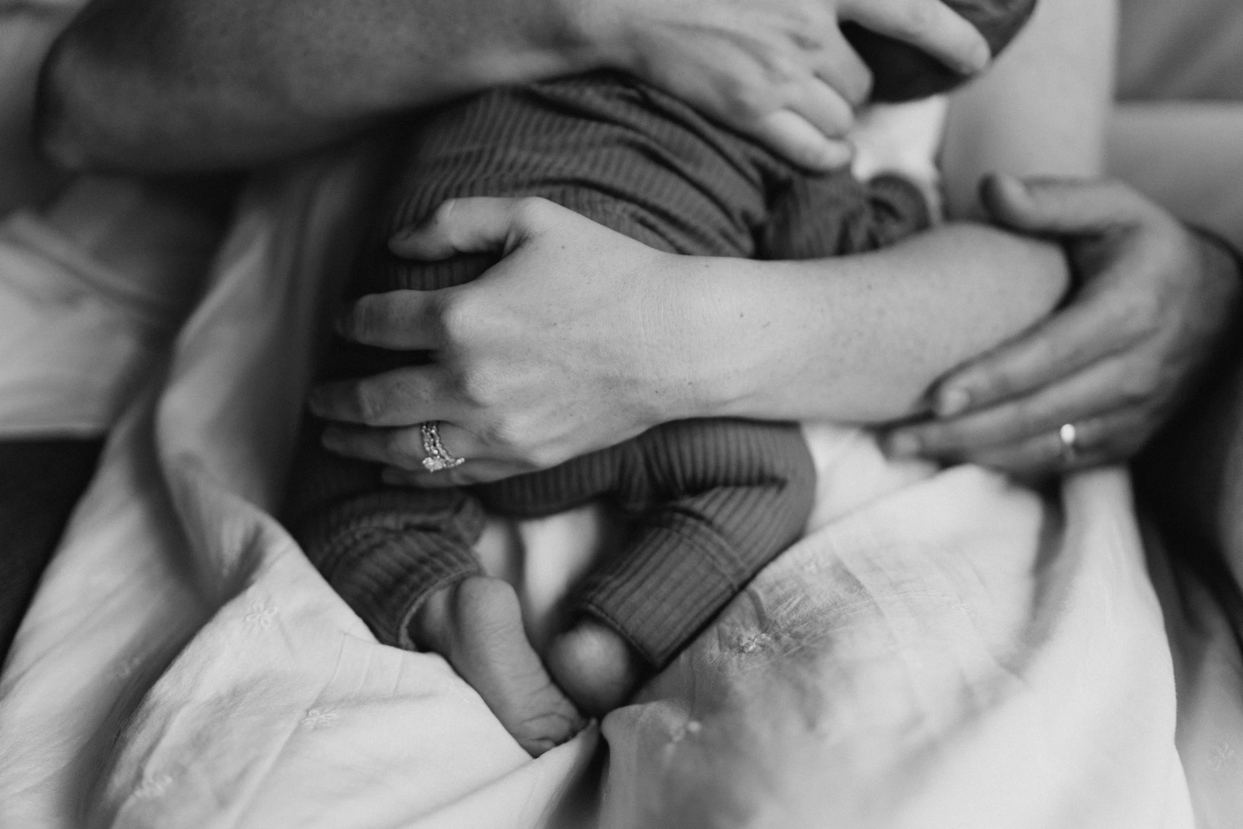 My newborn sessions take place in the comfort of your home, using soft natural light to create warm, intimate images. I focus on capturing authentic moments—your baby in your arms, tiny fingers wrapped around yours, peaceful naps, and quiet family connections. No stiff posing or artificial props, just genuine love and emotion.